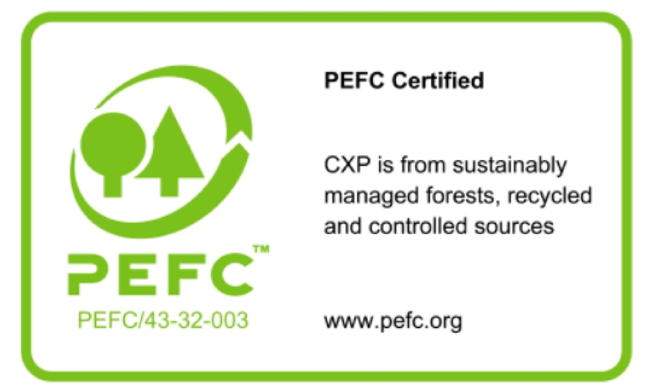 CXPは持続可能な森経営に寄与する無毒性エコ木材であることを国際標準PEFCとして認められました。 製品を作るために伐採せず、製品になれなかった木々を活用してプラスチックに代わるCXP。