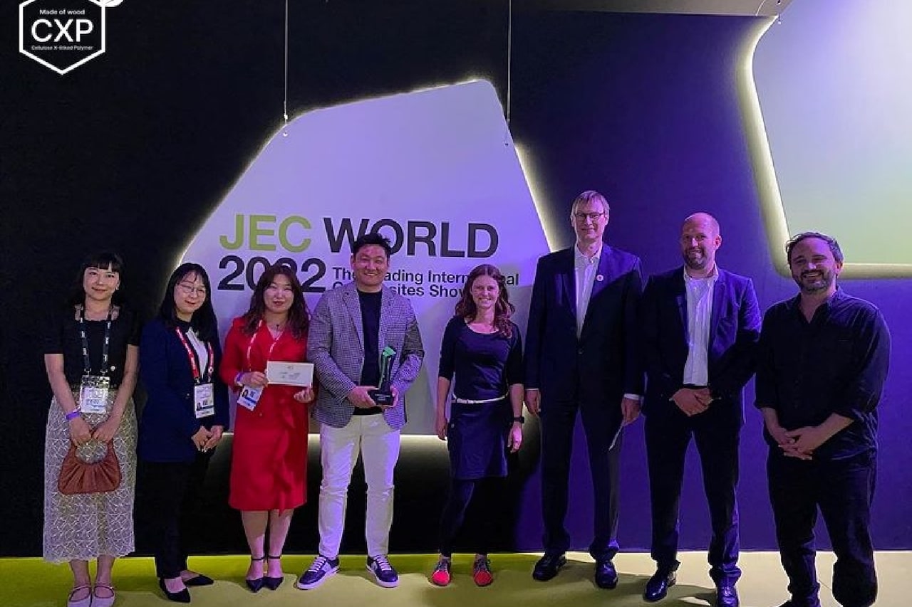 2022年5月にフランス·パリで開催された国際複合素材展示会(JEC World)に出場し、サステナビリティ部門を受賞しました。 世界最高の複合素材産業組織であるJECグループが開催したこの展示会には112カ国から約1300の企業が参加し、43,000人以上が訪れました。アジア諸国の中で初めての受賞であり、プラスチックに代わる熱可塑性無毒性木材CXPの世界市場進出の出発点となりました。